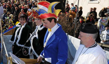 Nach dem Faschingsumzug findet die tradititionelle Büttenrede statt. Dort finden sich neben Prinzengarden, Musik, Rednern und Zugteilnehmern auch zahlreiche Bürgermeister und Politiker ein.